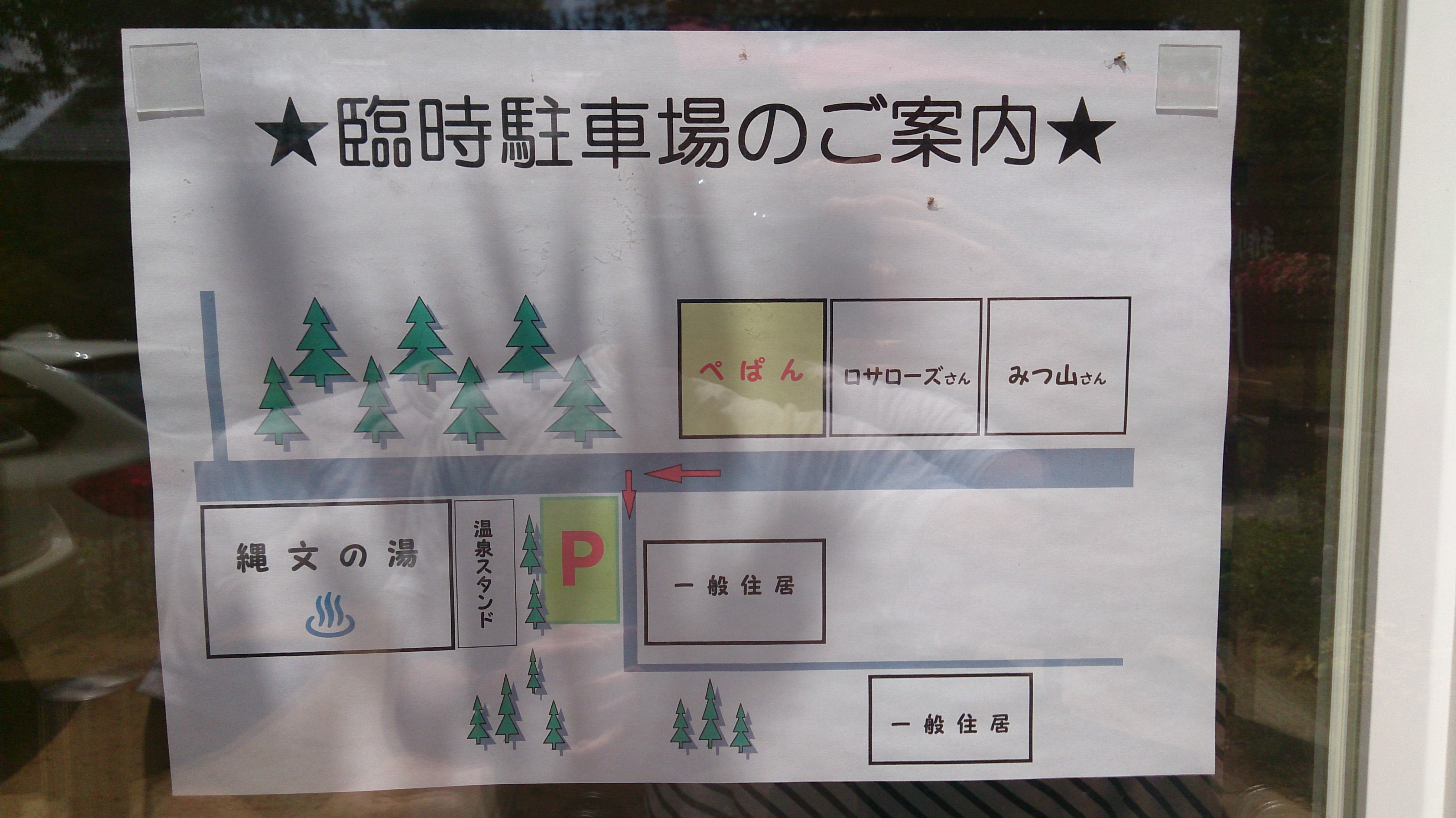 こちらのお店、比較的最近に住所登録がなされたためなのかどうか分かりませんが、住所でカーナビ検索してもお店に到達できないことが多いそうで、道の反対側にある「縄文の湯」で検索してナビゲーションするとスムーズに到着できます。