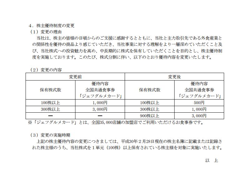 さらに私達優待族が一番感心のある優待内容がどうなるかというと、こういうことになるそうです。