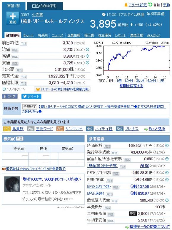 そんなもろもろがあってなのか、今日、トリドールは高値更新をしてきています。
