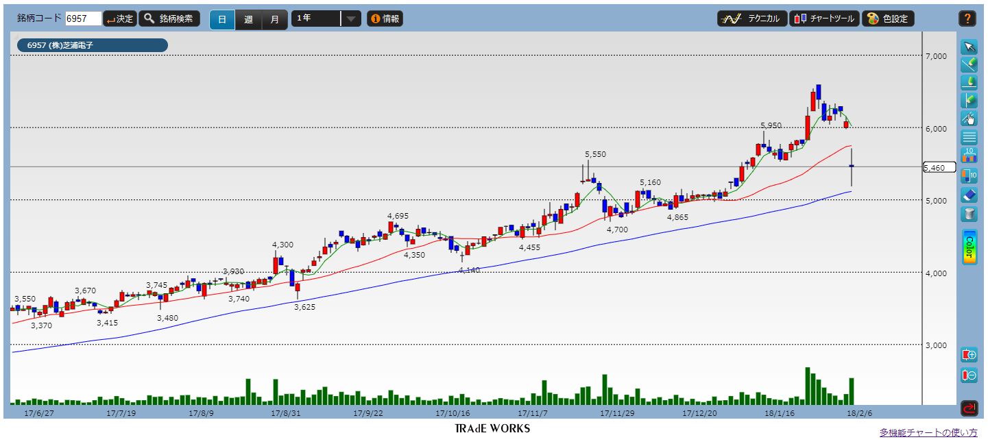 主力銘柄である「芝浦電子」と「エスティック」とも終値で前日比マイナスで終了しています。