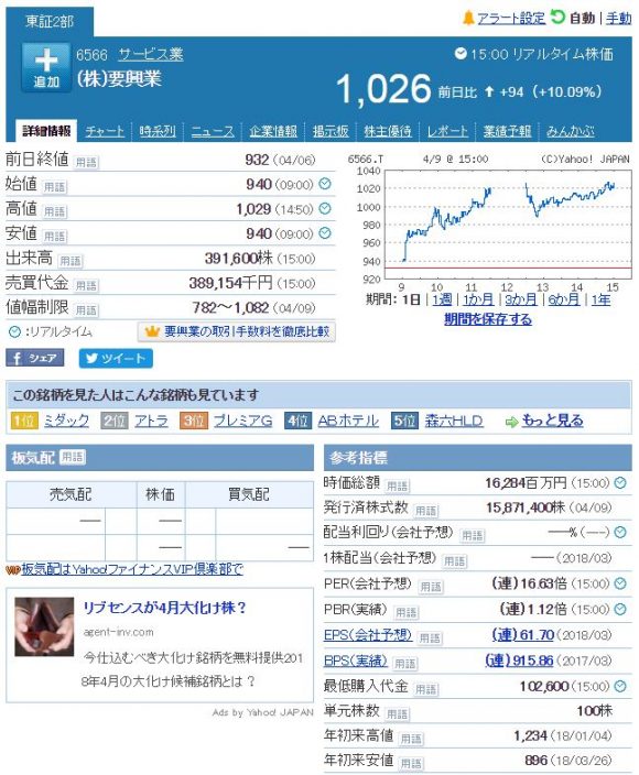 その他では要興業が何かで取り上げられたらしくて、グイグイと上昇してきたのも今日の印象に残ったヒトコマです。