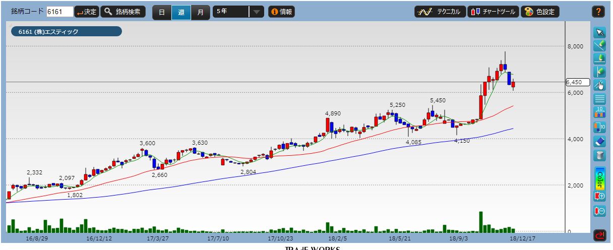 何にしてもほぼ総崩れ的な保有銘柄の中にあって、先週末の金曜日に前日比プラスで引けてくれているエスティックはキラリと光る銘柄だと思っています。