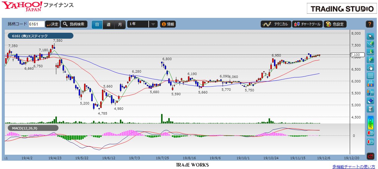 株価1,200円を超えてきてくれるといいんですけど、こちらもエスティック同様、次の決算発表待ちでしょう。